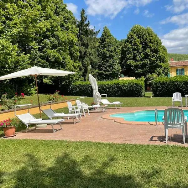 Accommodation for 18 guests across five unique suites, each featuring a private bathroom and kitchen. Guests have full access to the peaceful pool area and the surrounding garden.